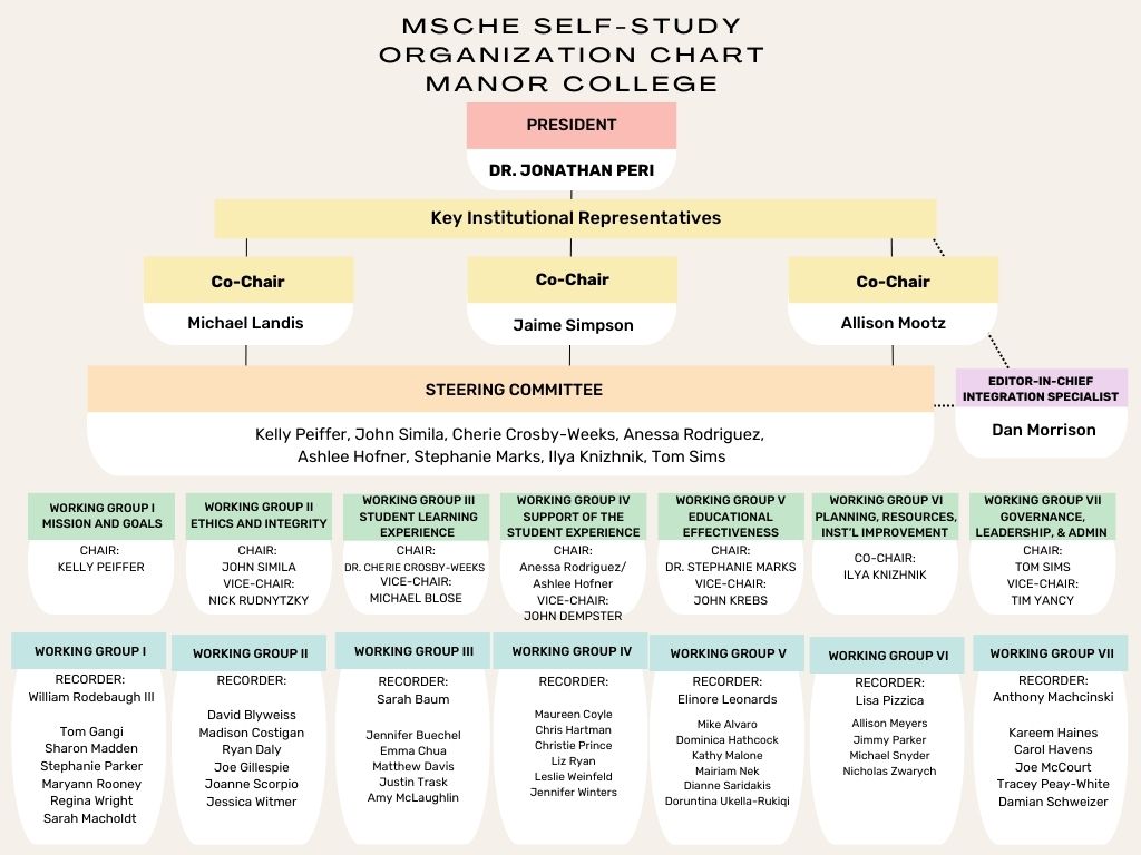 Please see the MSCHE Self-Study Organization Chart below.