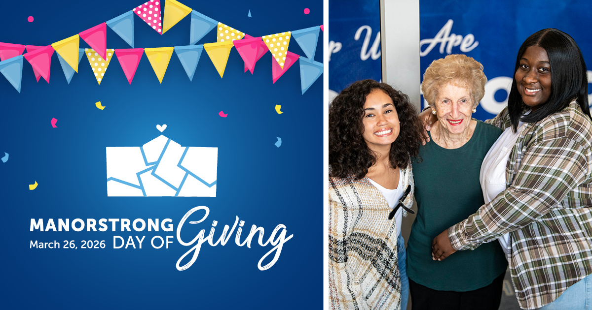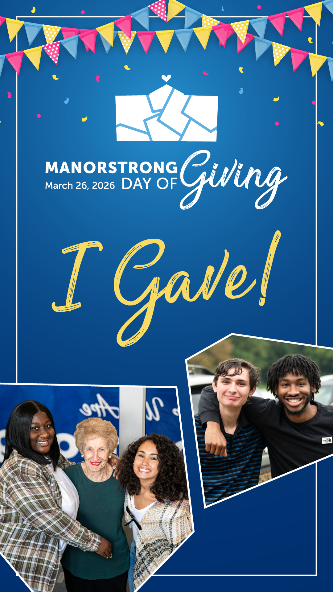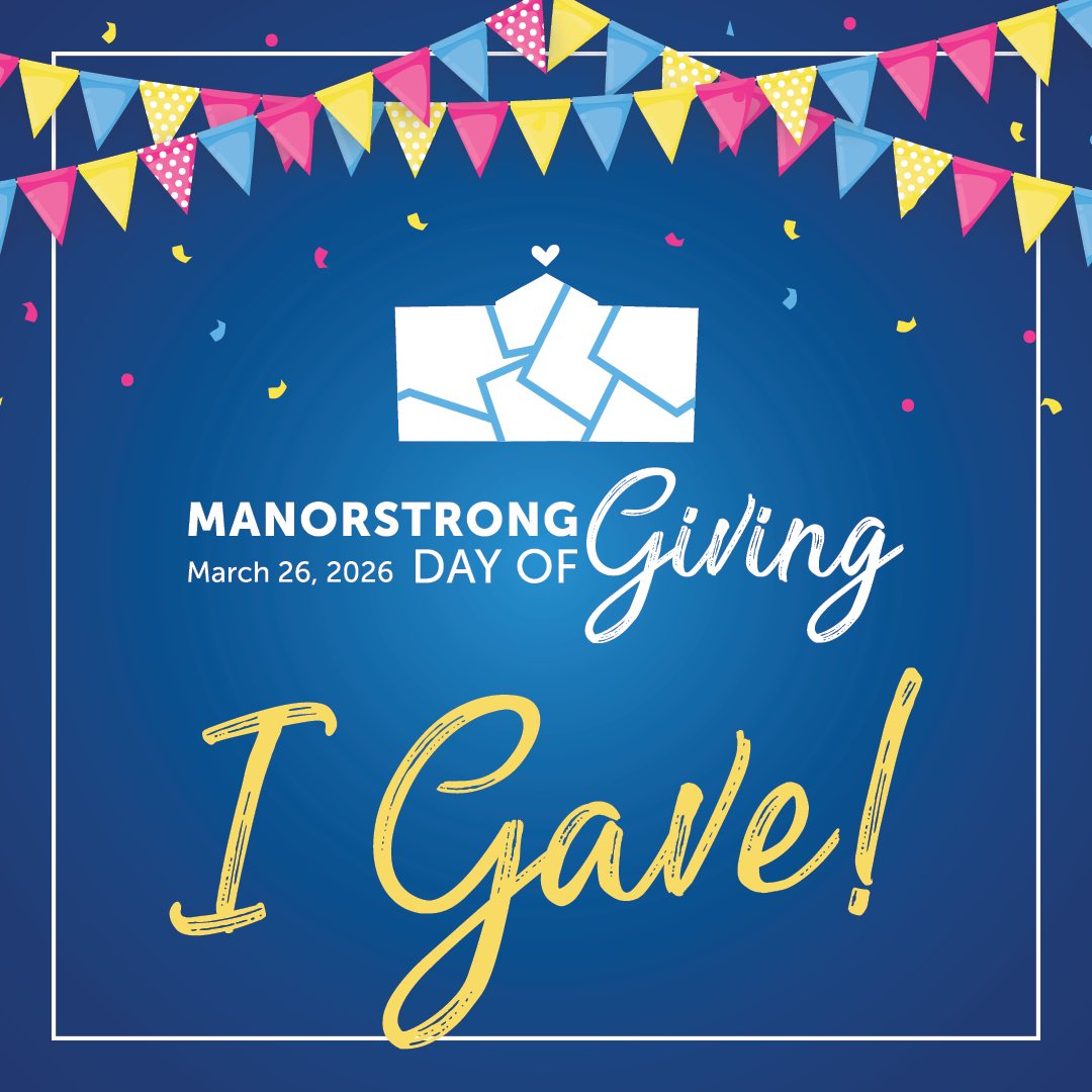 Share your Manor story with us on social media using the branded graphics below (just click download under the image you’d like). Download our “I Gave” graphic to share your Manor pride after you’ve made your gift.